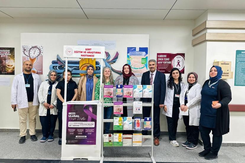 Siirt Eğitim ve Araştırma Hastanesi, 1–7 Nisan Ulusal Kanser Haftası’nda farkındalık oluşturmak amacıyla bilgilendirici bir etkinlik düzenledi. Hastane bünyesinde kurulan stantta vatandaşlara kanser hakkında bilgiler verilirken, erken teşhisin önemi vurgulandı ve katılımcılara broşür ile küçük hediyeler dağıtıldı.