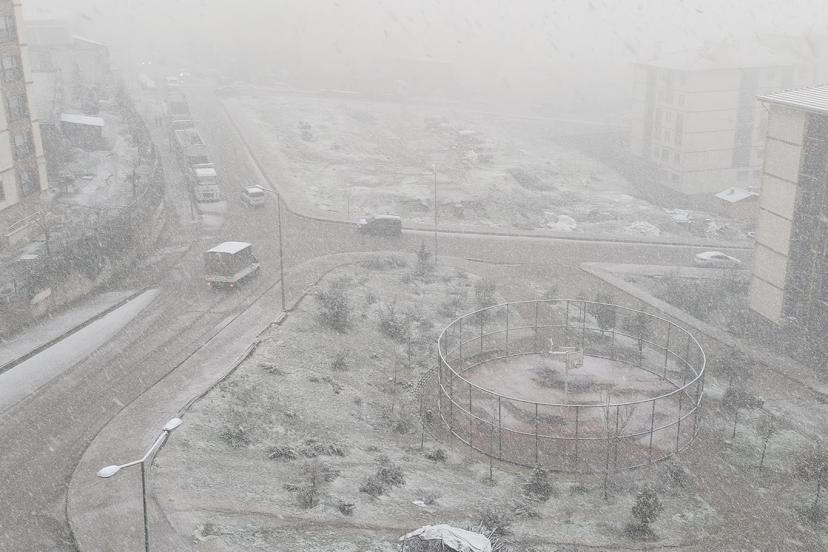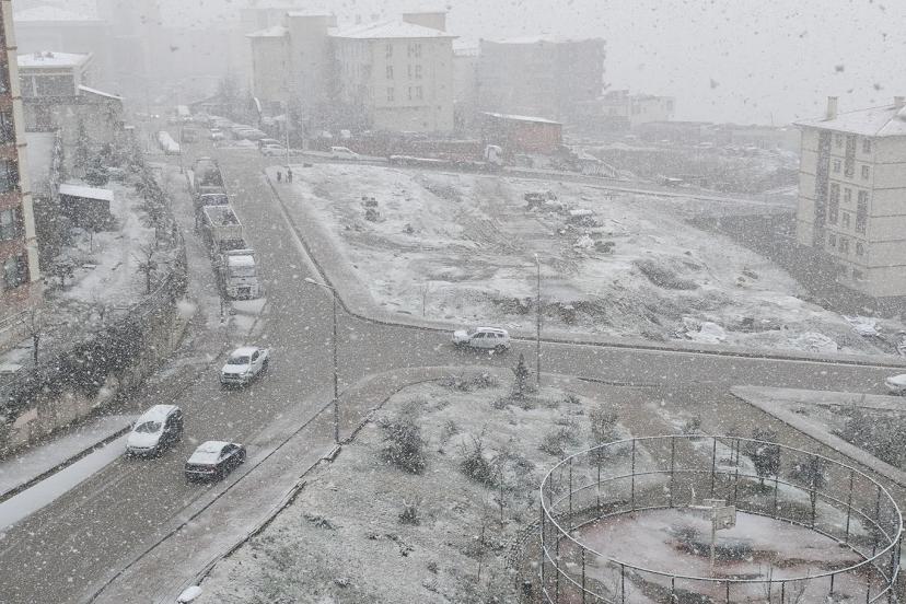 İlkbaharın ortasında kıştan kalma manzaraların yaşandığı kentte öğle saatlerinde aniden bastıran yoğun kar yağışı, kısa sürede yolları ve park hâlindeki araçların üzerini beyaz örtüyle kapladı.