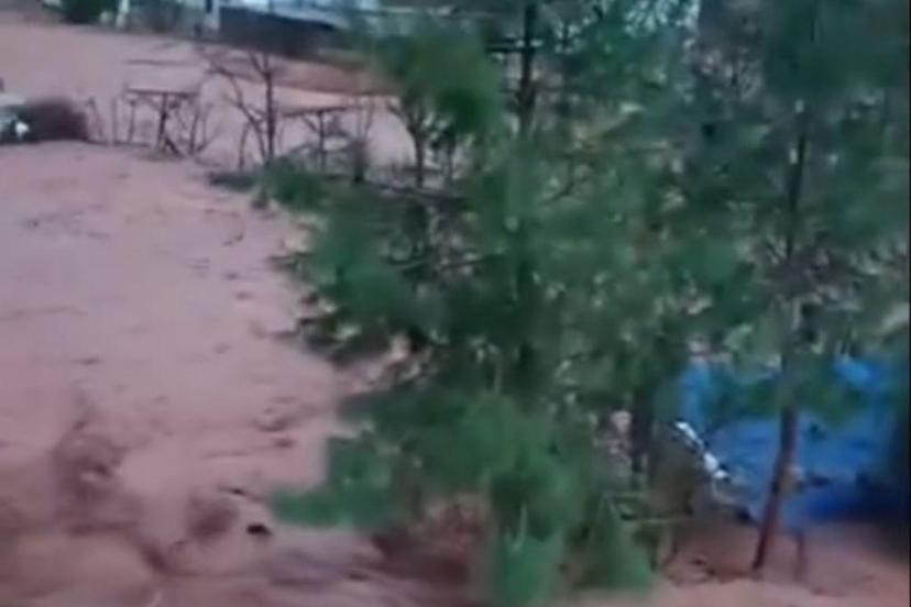 Şırnak'ta etkili olan yoğun yağışlar sonrası Kasrik Çayı tatı. Kasrik beldesi ve çevre köylerde sel meydana geldi.