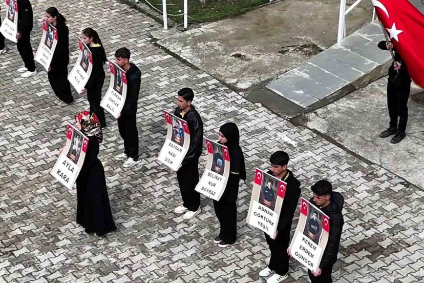 Tekman Anadolu Lisesi Okul Müdürü Selami Korkmaz tarafından organize edilen programda, Kahramanmaraş’ta yaşanan silahlı okul saldırısının ardından vefat eden 8 öğrenci ile 1 öğretmen anıldı. Elim faciada hayatını kaybedenlerin fotoğrafları ile okulun bahçesinde hazır bulunan öğrenciler hep birlikte isimlerini okudular ve "Burada" dediler.