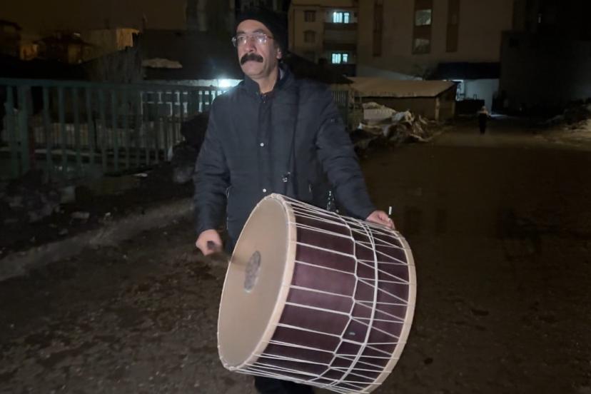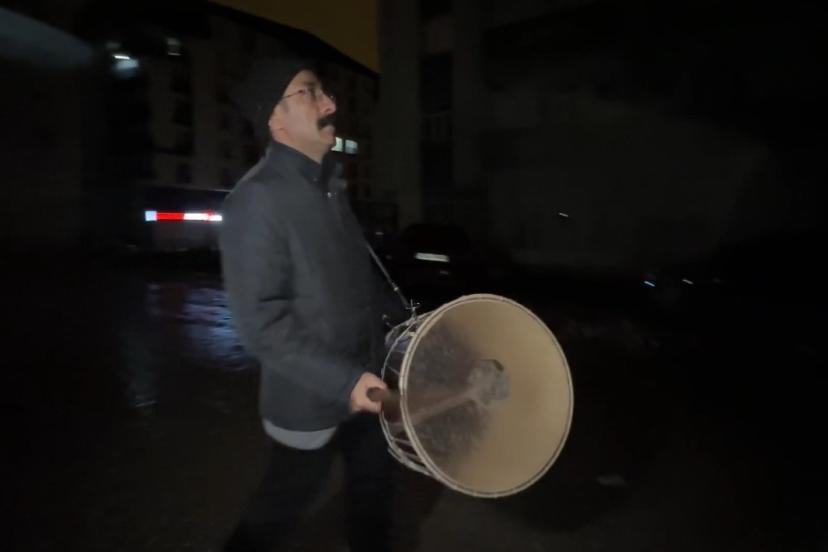 11 ayın sultanı Ramazan-ı Şerif’in ilk sahurunda, ilçe sakinlerinin bir kısmı modern telefon alarmlarıyla uyanmayı tercih ederken, bir kısmı da emektar davulcu Salih Erdoğan’ın tokmağından çıkan sesle uyandı. Hava sıcaklığının sıfırın altına düştüğü ilçede mesaisine başlayan Erdoğan, sokakları dolaşarak vatandaşları sahura kaldırdı.