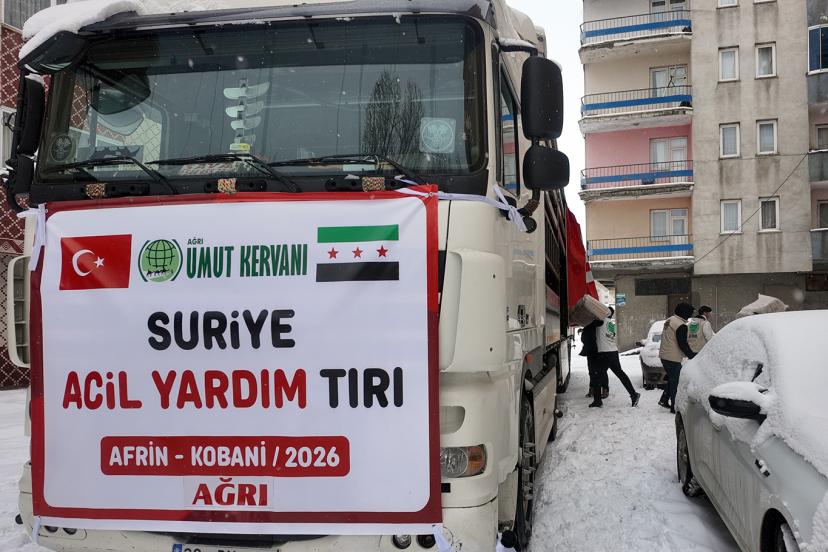 Kaplan, "Ağrı Umut Kervanı olarak yaklaşık bir ay önce başlattığımız "Ağrı'dan Suriye'ye Bir Tır" kampanyası kapsamında çalışmalarımızı tamamladık. Tırımızda hayırseverlerin vermiş olduğu gıda, giyim, ayakkabı, temizlik malzemesi, bebek maması, çocuk bezi gibi temel ihtiyaç malzemeleri vardır. Bu malzemeler hepsi Kobani bölgesine gönderilecek. Allah hayırseverlerimizin bağışlarını kabul etsin." dedi.