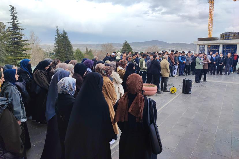 Özyazgan, "Bugün burada, Gazze'den yükselen direniş çağrısına kulak vermek, mübarek Mescid-i Aksa’nın özgürlüğü için ses olmak ve siyonist işgal zindanlarında zulüm gören esir kardeşlerimizle dayanışma içinde olduğumuzu haykırmak için toplandık. Gazze’deki mücahitlerin çağrısıyla 3 Nisan cuma günü 'Gösteri ve Esirler Cuması' ilan edilmiştir. Bizler de İnönü Üniversitesi öğrencileri olarak bu çağrıya icabet ediyor, bugünü bir seferberlik ve halk öfkesi günü olarak ilan ediyoruz. Bugün susmak, zulme ortak olmaktır. Bugün konuşmak, direnişin bir parçası olmaktır." dedi.