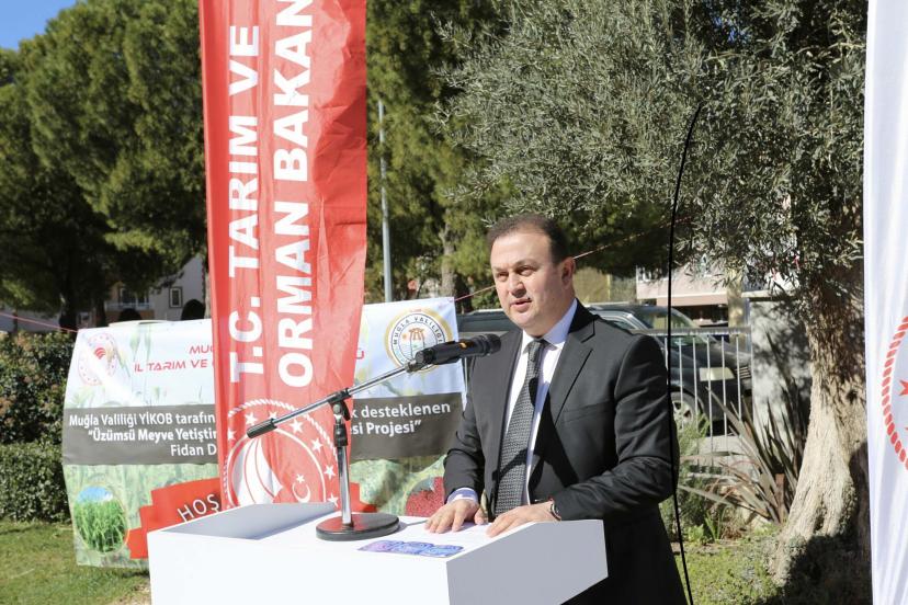 Muğla Valiliği Yatırım İzleme ve Koordinasyon Başkanlığı (YİKOB) tarafından desteklenen, Muğla İl Tarım ve Orman Müdürlüğü'nce yürütülen 'Üzümsü meyve üretiminin yaygınlaştırılması' projesi kapsamında fidan dağıtım töreni düzenlendi. Müdürlük bahçesinde gerçekleştirilen törende konuşan Muğla Vali Yardımcısı Halil Serdar Cevheroğlu, uzun vadeli tarımsal projelerin üretici ve ülke ekonomisi açısından büyük önem taşıdığını belirtip, "Projelerin en güzel tarafı, yıllar sonra meyvelerini toplarken verilen emeğin gururunu yaşamaktır" dedi.