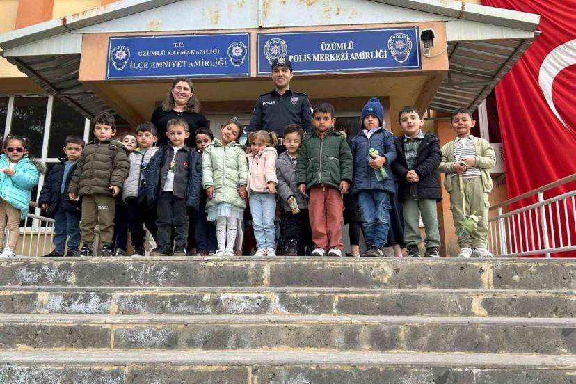 Üzümlü’de anaokulu öğrencilerinden emniyete ziyaret