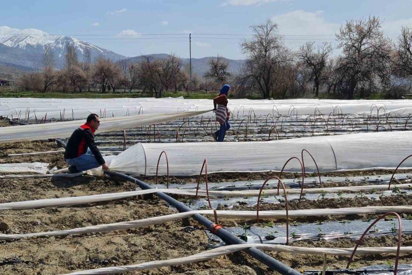Üzümlü’de üretim yapan çiftçi Talip Akyüz, 25 dekarlık alanda yaklaşık 100 bin salçalık biber fidesini toprakla buluşturdu. Alçak tünel yöntemiyle gerçekleştirilen üretimle yaklaşık 20 gün erkencilik sağlanması hedefleniyor.