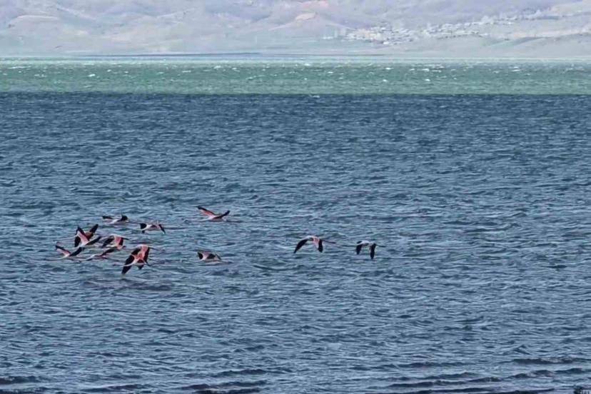 Van Gölü havzası, baharın gelişiyle birlikte bir kez daha doğanın en zarif konuklarını ağırlamaya başladı. Halk arasında "allı turna" olarak bilinen bir grup flamingo, Erçek Gölü’ne gelmeye başladı.