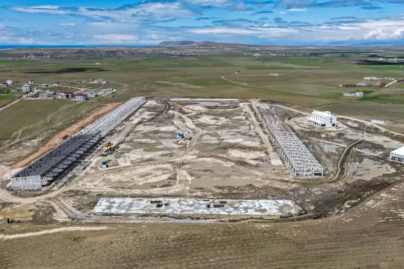 Van Büyükşehir Belediyesi'nin, Van-Erciş karayolu üzeri çevre yolu bağlantı noktasında yapımını sürdürdüğü yeni sebze ve meyv...