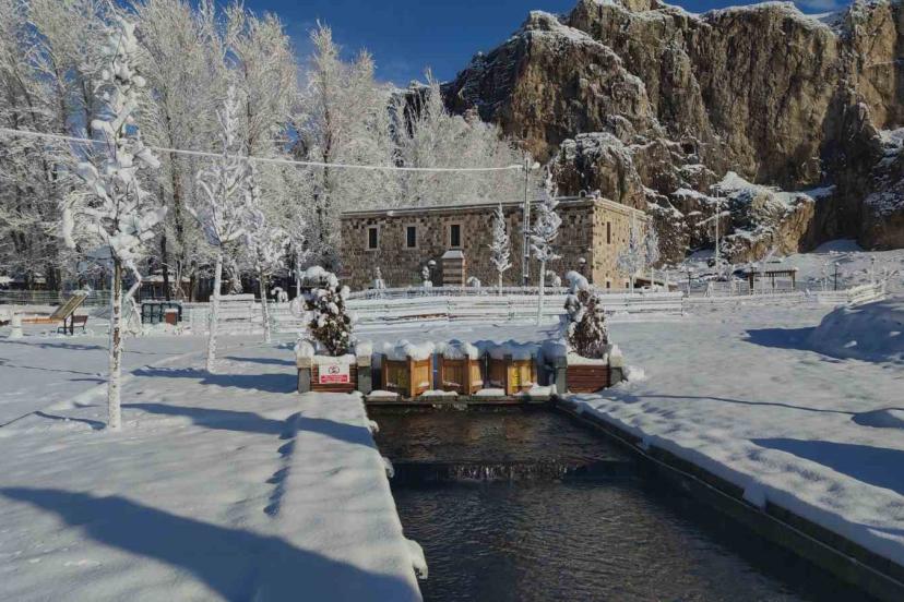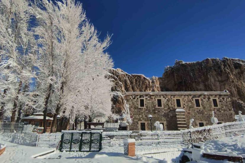 Doğu Anadolu’nun incisi Van’da, gece saatlerinde başlayan ve etkisini giderek artıran kar yağışı, şehri adeta bir masal diyarına çevirdi. Sabahın ilk ışıklarıyla ortaya çıkan görüntüler, vatandaşlara seyir zevki yüksek kareler sundu. Gece yarısı başlayan yağışla birlikte ağaçlar kar çiçekleri açarken, tarihi ve turistik mekanlar beyaz örtüyle kaplandı. Özellikle Van Kalesi güneyindeki tarihi Husrev paşa Külliyesi, Horhor Camii ve ağaç dallarında biriken karlar, sessizliğin hakim olduğu alanda estetik bir dokunuş kattı.