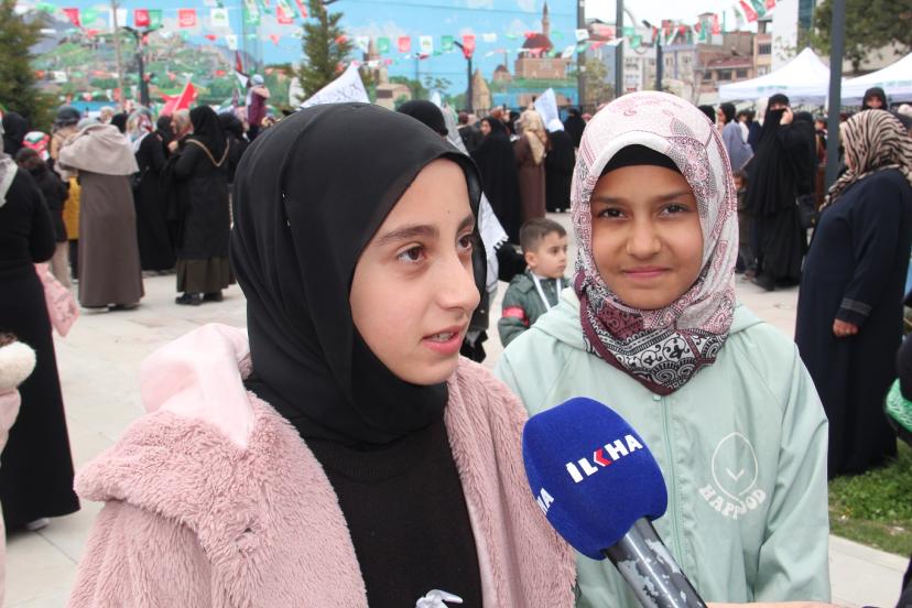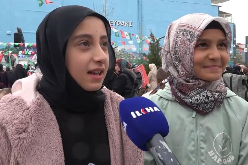 Soğuk havaya rağmen alanı dolduran çocuklar, "Peygamberimizi, dünyalar kadar, annem babamdan binlerce kat daha fazla seviyorum." sözleriyle Hazreti Muhammed aleyhissalâtü vesselâma olan sevgilerini dile getirdiler.