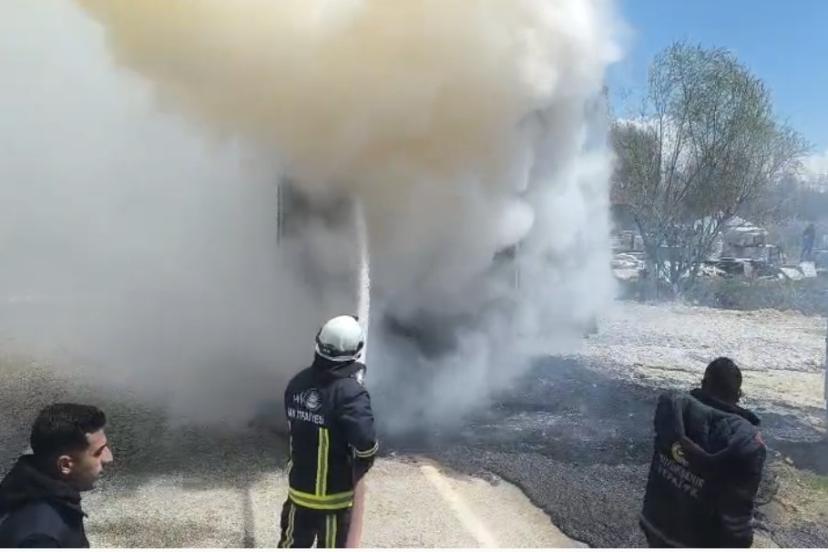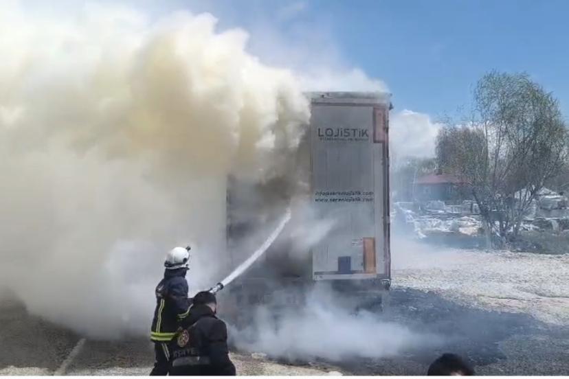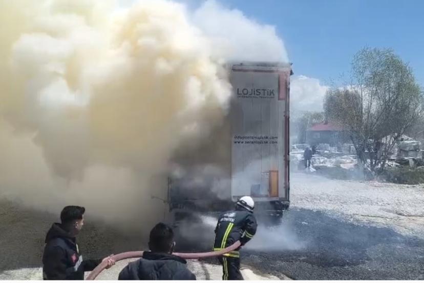 Van’ın Erciş ilçesinde seyir halindeki tırın dorsesinde çıkan yangın itfaiye ekiplerince söndürüldü.