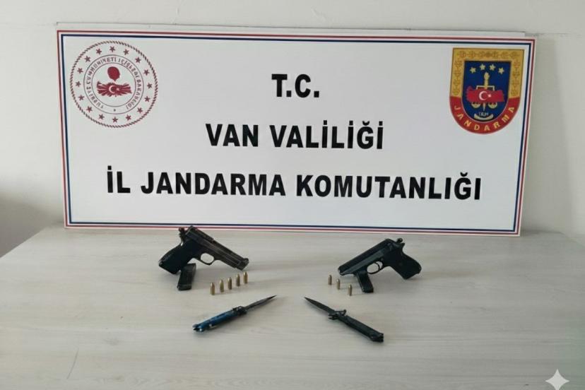 İl Jandarma Komutanlığı Kaçakçılık ve Organize Suçlarla Mücadele Şube Müdürlüğü tarafından Erciş ilçesi Çelebibağı Mahallesi’nde ikamet eden M.K. (39) isimli şahsa ait ev ve eklentilerinde arama yapıldığı belirtilen açıklamada, "Yürütülen aramada ise 1 adet berette marka 9 mm ruhsatsız tabanca, 1 adet 7.65 mm ruhsatsız tabanca, 2 adet tabanca şarjörü, 3 adet 7.65 mm fişek, 5) adet 9 mm fişek ve 2 adet bıçak ele geçirilerek muhafaza altına alındı. Şüpheli M.K. (39) isimli şahıs hakkında 6136 S.K. kanuna göre adli işlemler başlatılarak gözaltına alınmıştır" ifadeleri kullanıldı.