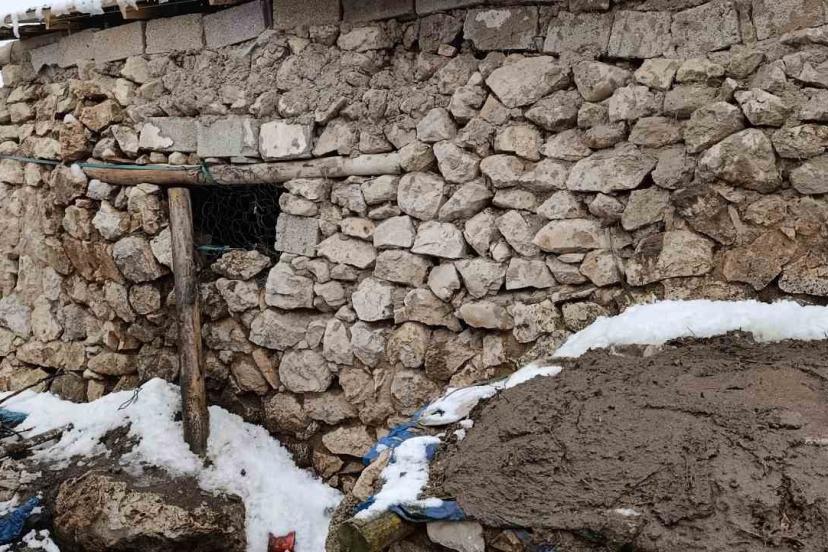Van’daki depremde bir ahırın duvarı çöktü