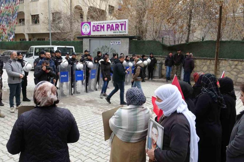 Van’da terör örgütü PKK tarafından çocukları dağa kaçırılan ailelerin başlattığı evlat nöbeti devam ediyor. Ellerindeki Türk bayraklarıyla DEM Parti İl Başkanlığı önüne kadar sessiz bir şekilde yürüyen ve tek amaçlarının evlatlarına kavuşmak olduğunu belirten aileler, çocuklarına ‘teslim olun’ çağrısında bulundu.