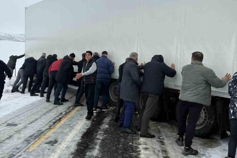 Muş’un Varto ilçesinde kar yağışı sonrası kayganlaşan yolda kayan bir tır yolu ulaşıma kapattı. Uzun araç kuyruklarının oluştuğu bölgede trafik, ekiplerin çalışmasıyla yeniden açıldı.