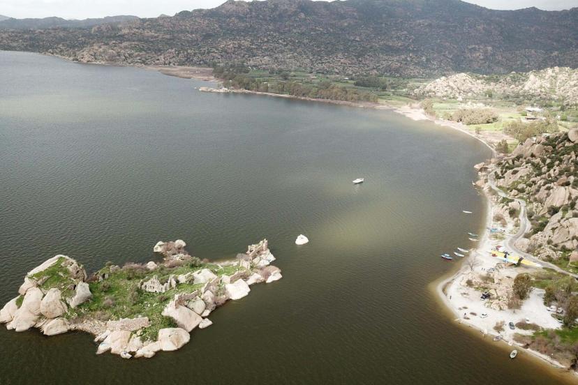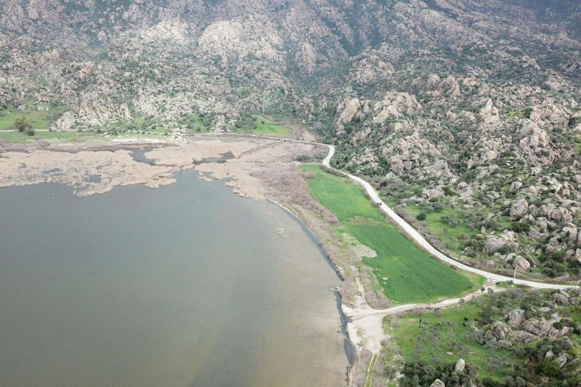 Yağmurlarla dolan Bafa Gölü, dronla görüntülendi
