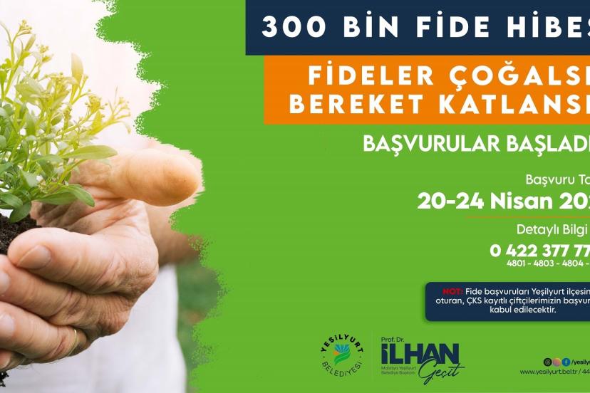 "Fideler Çoğalsın, Bereket Katlasın" sloganıyla gerçekleştirilecek fide dağıtımında, ÇKS (Çiftçi Kayıt Sistemi) kaydı bulunan çiftçilere toplam 300 bin adet fide teslim edilecek. Başvurular ise 20-24 Nisan tarihleri arasında alınacak. Yeşilyurt Belediyesi Tarımsal Hizmetler Müdürlüğü koordinesinde yürütülecek olan destek programı kapsamında, Yeşilyurt ilçesinde ikamet eden ve ÇKS (Çiftçi Kayıt Sistemi) kaydı bulunan çiftçilerin başvuruları kabul edilecek. Başvurularla ilgili detaylı bilgi almak isteyen vatandaşlar, 0422 377 77 77 numaralı telefondan 4801-4803-4804-4806 dahili hatları üzerinden yetkililere ulaşabilecek. Fide dağıtımıyla birlikte Yeşilyurt’ta tarımsal üretimin daha da artması, çiftçilerin ekonomik olarak güçlenmesi ve yerel kalkınmanın hız kazanması hedefleniyor.