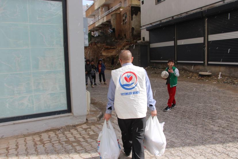 Yetimler Vakfı Mardin Temsilciliği, kentte bulunan yetim ve ihtiyaç sahibi ailelere yönelik insani yardım çalışmalarını sürdürüyor. Hayırseverlerin katkılarıyla hazırlanan gıda kolileri, Yetimler Vakfı Mardin Temsilciliği tarafından kapı kapı dolaşılarak yetimlere ve ihtiyaç sahiplerine teslim edildi.
