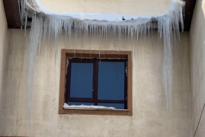 Hakkari’nin Yüksekova ilçesinde etkili olan dondurucu soğuklar yaşamı olumsuz etkilerken, bina çatılarında dev buz sarkıtları oluştu.