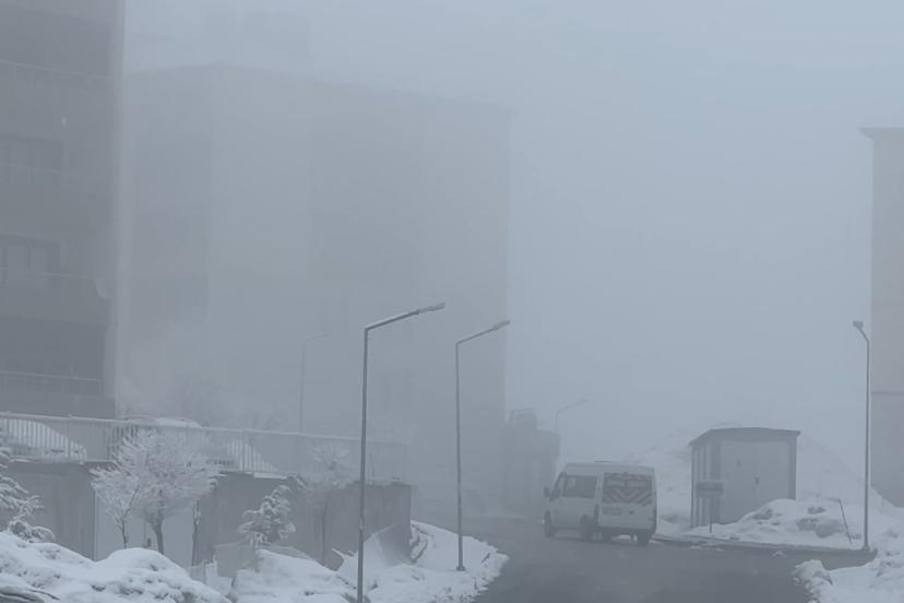 Yüksekova’da yoğun sis seyirlik görüntüler oluşturdu