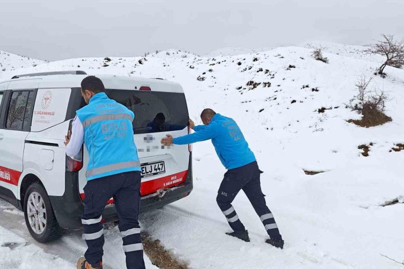 Bitlis Sağlık Müdürlüğü koordinasyonunda Bitlis Ağız ve Diş Sağlık Merkezi Evde Sağlık Hizmetleri ekibi çalışmalarına devam ediyor. Yoğun kar nedeniyle araç yolda kalınca, doktor ve teknisyen yardımcısı aracı itmek zorunda kaldı. Tüm zorluklara rağmen ekip, Saniye Teyze’ye ulaşmayı başardı ve diş çekimi başarılı bir şekilde tamamlandı.