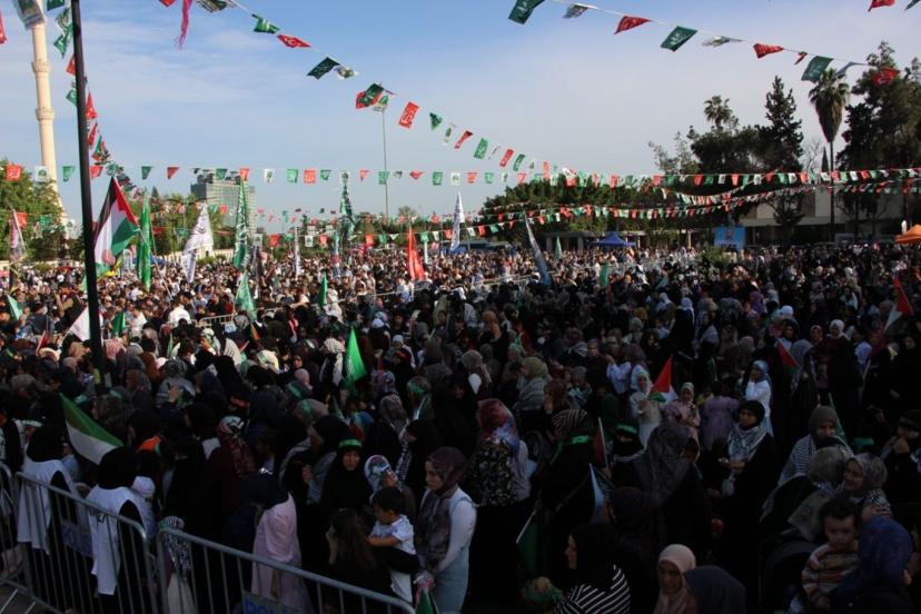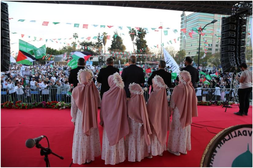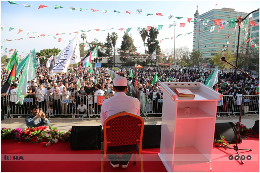 Meydanda toplanan binlerce kişi ellerinde tevhid ve Filistin bayraklarını dalgalandırarak etkinliğe eşlik etti. Alanda ayrıca 2023 yılında namaz kıldığı sırada bıçaklanarak şehit edilen Sacit Pişgin posterleri de yer aldı.