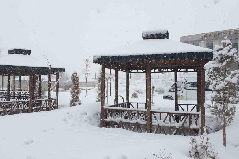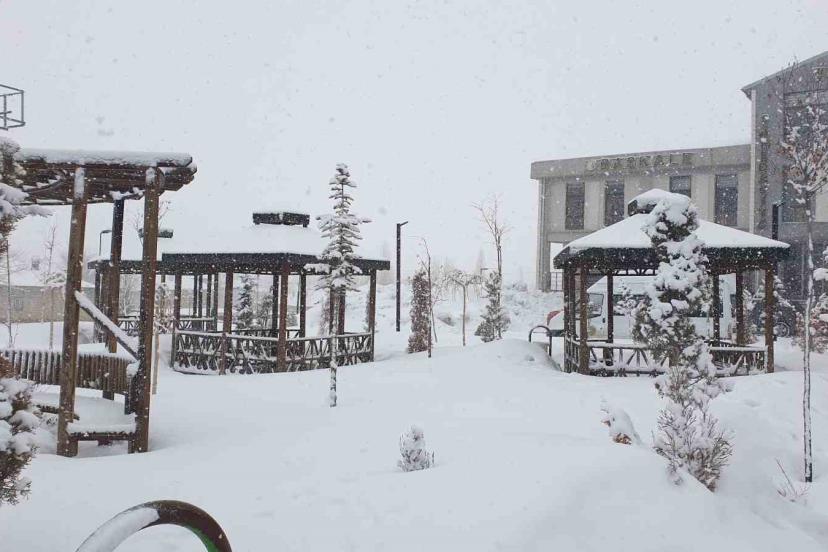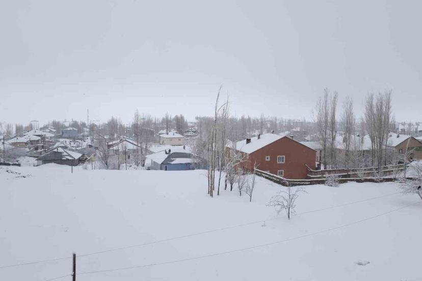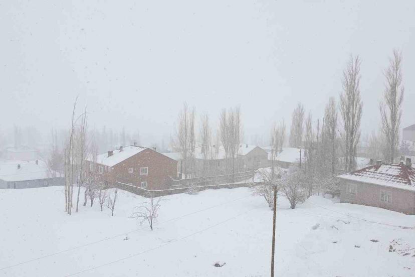 Van’ın Başkale ilçesinde etkili olan kar yağışı nedeniyle her yer beyaza büründü.