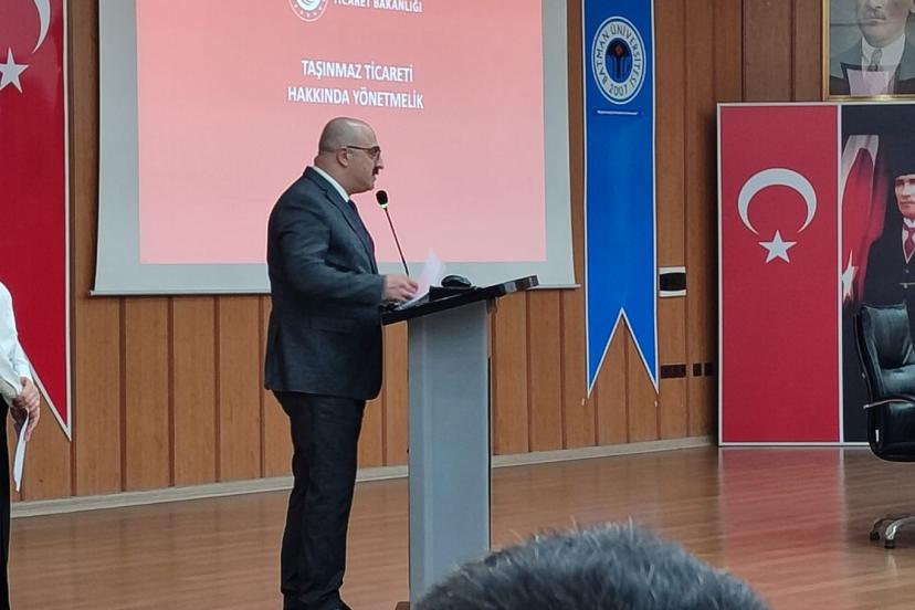 Seminerde, taşınmaz ticareti alanında faaliyet gösterenler ile sektöre girmek isteyenlere yönelik bilgilendirme yapıldı.
