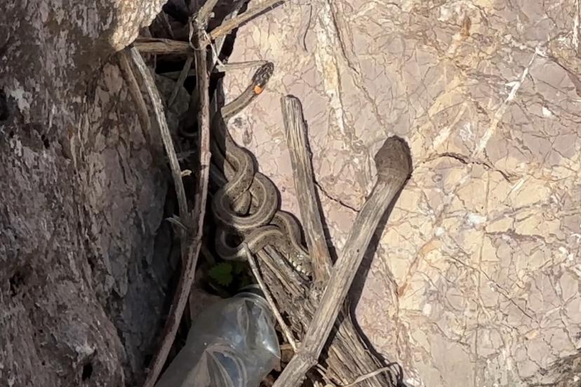 Hakkari’nin Yüksekova ilçe merkezine 20 kilometre uzaklıkta bulunan ‘Yılan Pınarı’ bölgesinde sürü halinde güneşlenen yılanla...