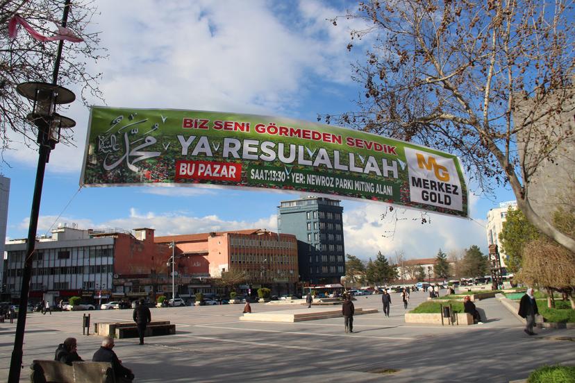 Merkez ilçelerde gece saatlerinde mesai yapan Peygamber aşıkları kentin birçok kavşak, üst geçit, refüj ve duvarlara Türkçe, Kürtçe ile Zazaca dil ve lehçelerinde duyuru brandaları astı.