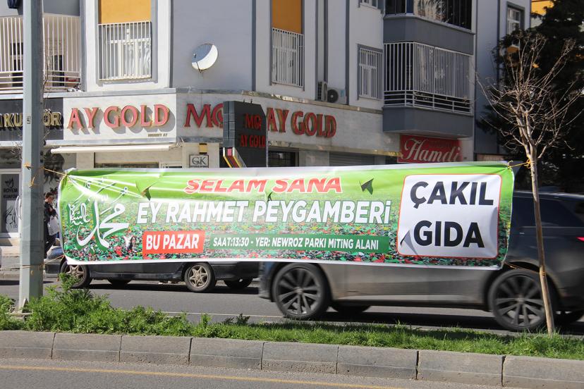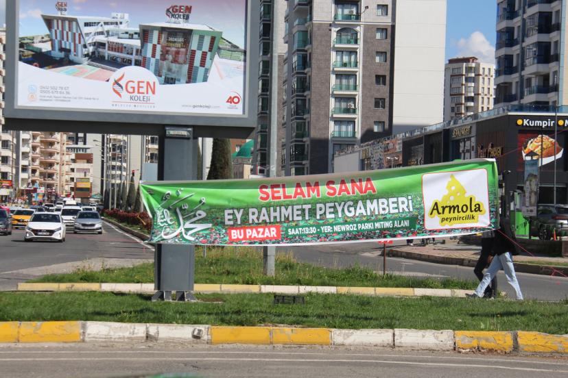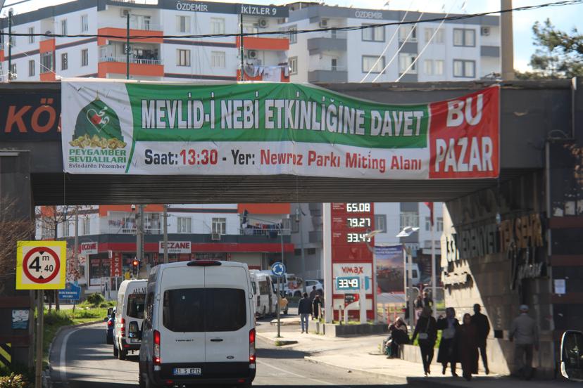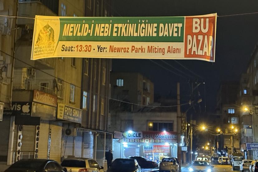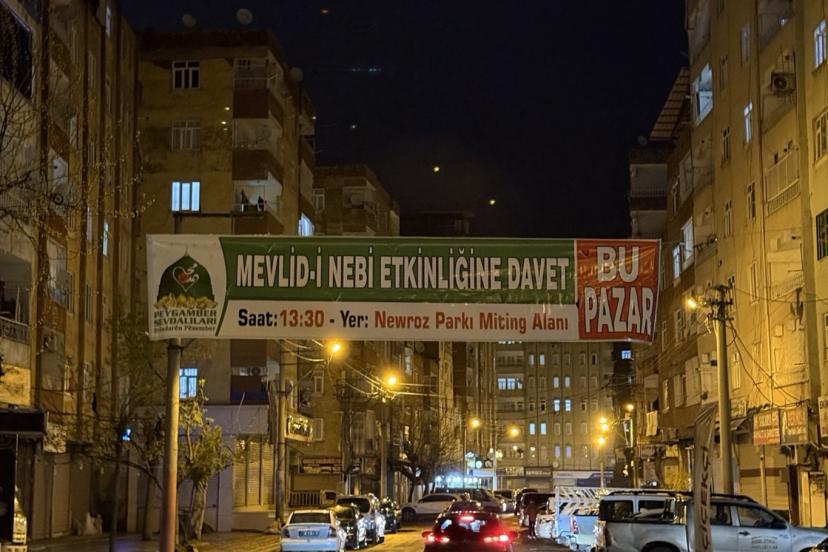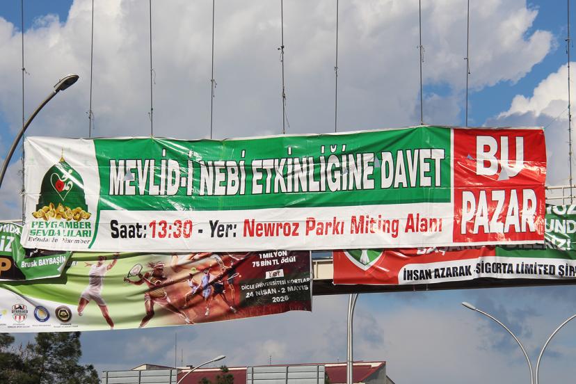 Hafta sonu Diyarbakır'da gerçekleştirilecek Mevlid-i Nebi etkinliğine ilişkin duyuru brandaları kentin farklı noktalarına asılmaya başlandı.