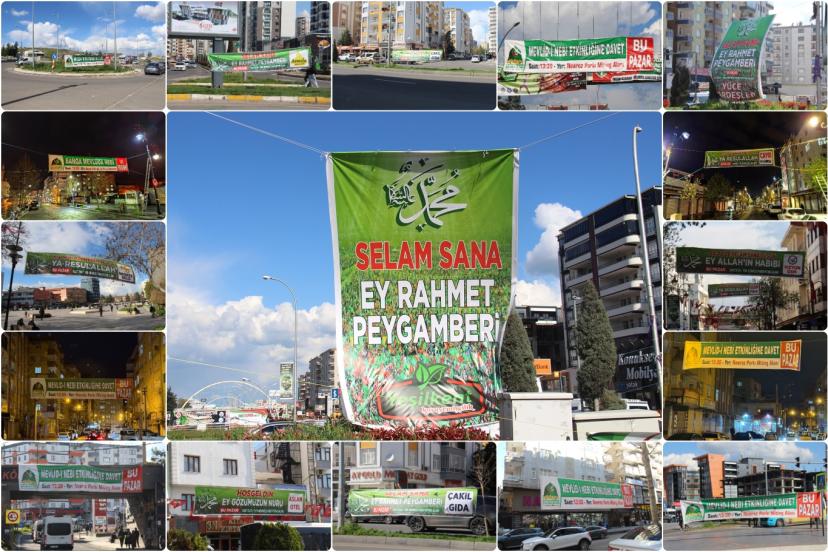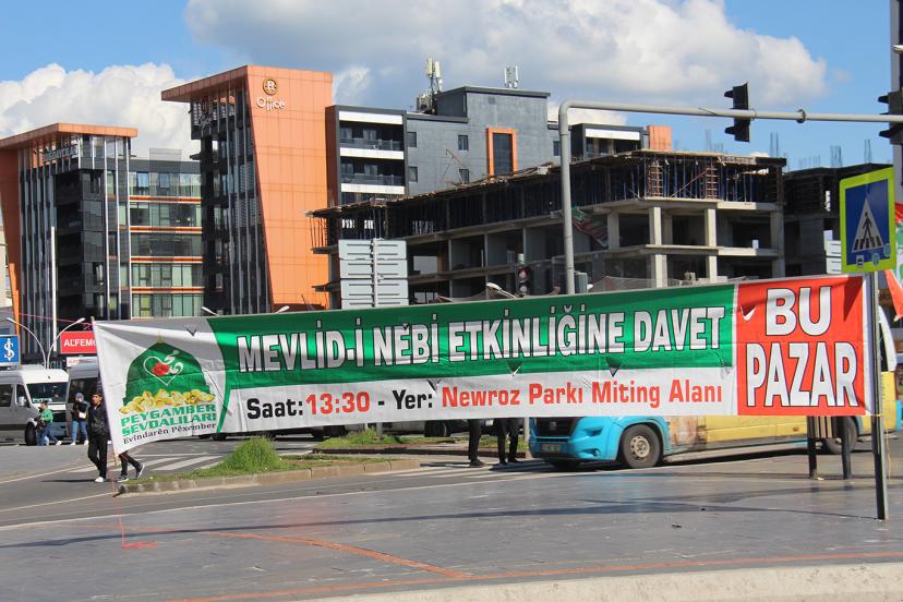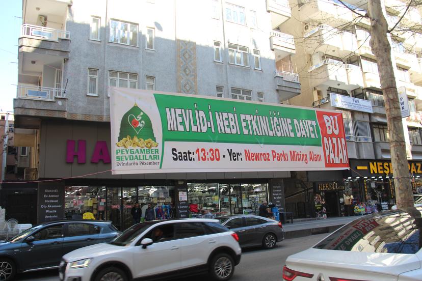 Peygamber Sevdalıları Vakfı tarafından 19 Nisan Pazar günü Nevruz Park alanında gerçekleştirilecek Mevlid-i Nebi etkinliği için Diyarbakır'ın duyuru brandaları asılmaya başlandı.