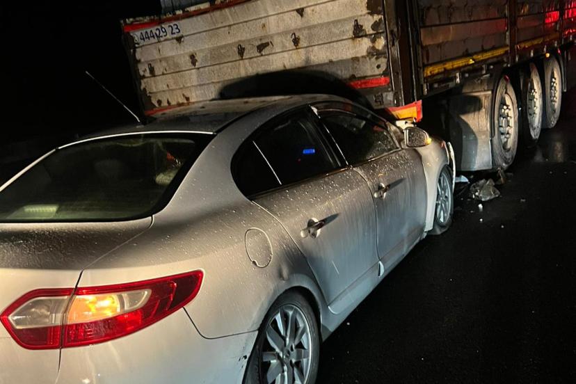 Çarpmanın şiddetiyle otomobil tırın altına sürüklenirken, araçta bulunan 2 kişi yaralandı.