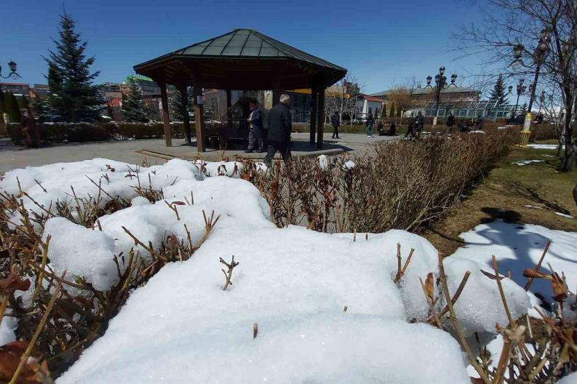 Erzurum’da "dört mevsim" bir arada: Bir yanda kar esareti, bir yanda Palandöken’de kayak, bir yanda parklarda bahar keyfi, bir yanda buz tutan şadırvanlar