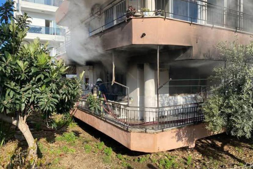 ANTALYA'nın Serik ilçesinde zemin katta çıkan yangın hasara neden oldu. Yangın sırasında evde bulunan Nigar Bostan ve yeğeni alevlerin arasından son anda kurtuldu.