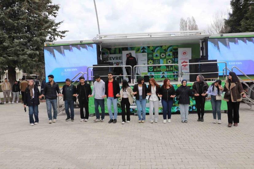 Çevre, Şehircilik ve İklim Değişikliği Bakanlığına bağlı Türkiye Çevre Ajansı tarafından organize edilen "Yeşil Kampüs Festivali" projesi kapsamında yola çıkan Çevre Tırı, Fırat Üniversitesi’nde öğrencilerle buluştu. Çevre bilincinin artırılması ve sürdürülebilir yaşam alışkanlıklarının yaygınlaştırılması amacıyla düzenlenen etkinlik, yoğun katılım ve ilgiyle gerçekleştirildi. Fırat Üniversitesi Rektörü Prof. Dr. Fahrettin Göktaş, Rektör Yardımcısı Prof. Dr. İrfan Kaygusuz, Genel Sekreter Prof. Dr. Sinan Akpınar festival kapsamında kurulan etkinlik alanını ziyaret etti. Rektör Prof. Dr. Fahrettin Göktaş, Çevre Tırı’nı inceleyerek yürütülen çalışmalar hakkında yetkililerden bilgi aldı. Öğrencilerle bir araya gelen Rektör Prof. Dr. Göktaş, çevre duyarlılığının genç nesiller arasında yaygınlaşmasının önemine dikkat çekti.