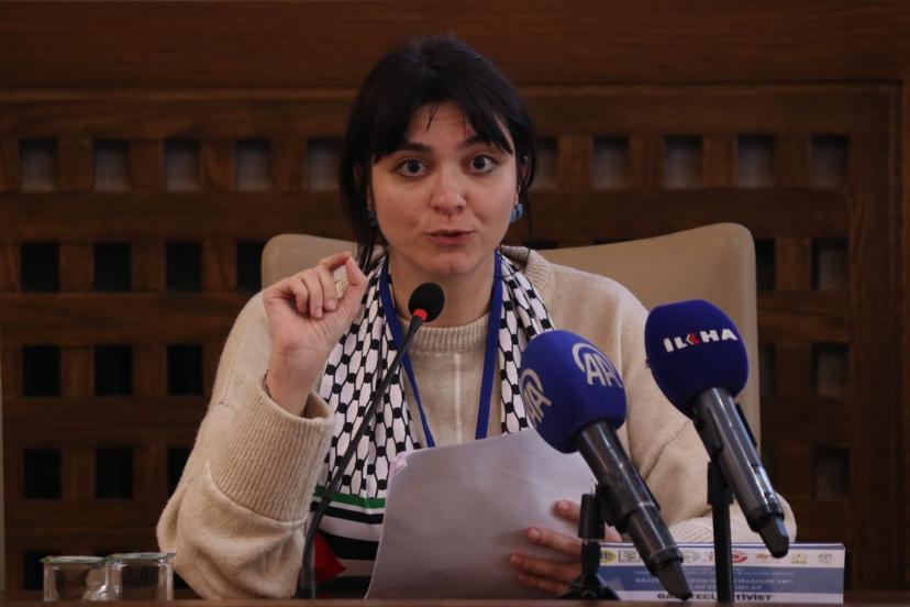 Küresel Sumud Filosu aktivistlerinden Gazeteci Sümeyye Sena Polat, soykırımın katliamdan farklı olarak geleceği de yok etmeyi hedefleyen bir eylem olduğunu, tüm bunlara rağmen Filistinlilerin davalarından ve direnişten vazgeçmeyerek geleceklerine sahip çıktığını hatırlattı.