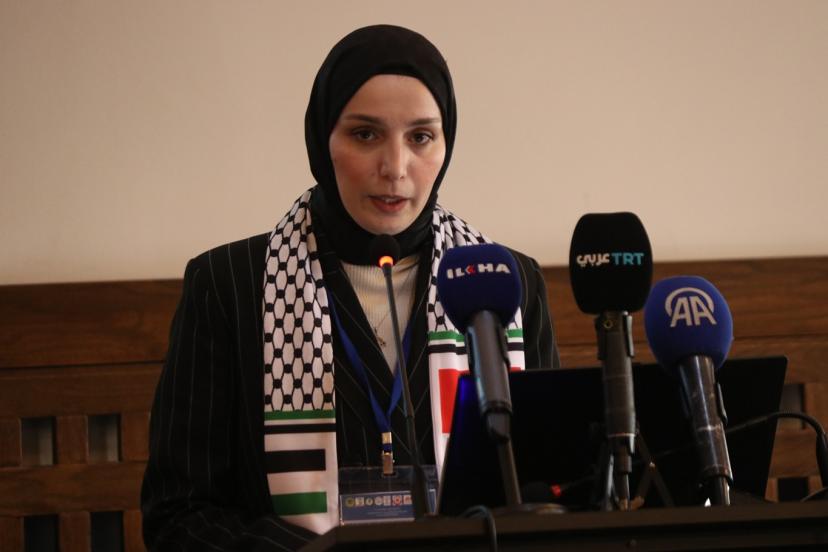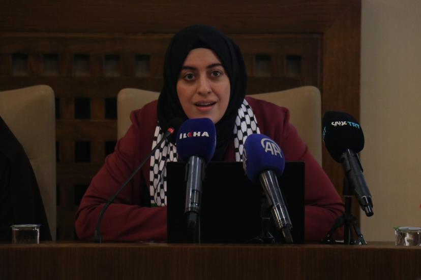 Filistinli esir Hasan Seleme'nin eşi Gufran Zamel, "​Bugün huzurlarınızda sadece sıradan bir hikaye anlatmak için bulunmuyorum. ​​Aksine, Filistinli kadının hem zindanların içinde hem de dışında yaşadığı canlı bir gerçeği, bireysel acıyı aşan ve her Filistinli eve yayılan toplu bir ıstırabı dile getirmek için buradayım. ​​Şu anda bizler burada otururken, parmaklıklar ardında aralarında akademisyenlerin, doktorların, öğretmenlerin, avukatların ve hatta reşit olmayan kız çocuklarının bulunduğu 86 Filistinli kadın tutsak bulunmaktadır. ​​Ancak tablo sadece bunlarla sınırlı değil. ​Bugün yaklaşık 10 bin Filistinli esir gerçeğiyle karşı karşıyayız; bu da demek oluyor ki her gün korku, kaygı ve öldürücü bir bekleyiş içinde yaşayan 10 bin Filistinli aile var demektir. ​​Her esirin arkasında uykusuz bir anne, yol gözleyen bir eş ve babalarının yokluğunda, belki de hiç gelmeyecek bir kavuşma umuduyla büyüyen çocuklar var." dedi.