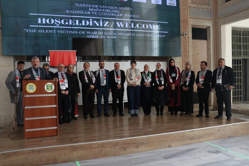 Panelin ardından Edebiyat Fakültesi Şeref Salonu'nda "Adalet Filistinli Kadınlar için" başlıklı serginin açılışı yapıldı. Sergide, Gazze'de hayatını kaybeden 22 bin kadın ve çocuğun isimlerinin yazılı olduğu 70 metrelik pankart açıldı. (İLKHA)