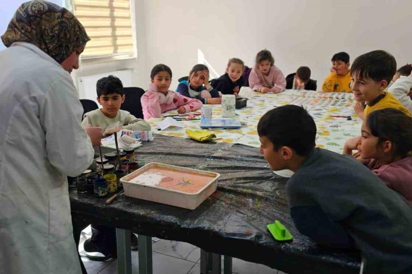 Muş’un Hasköy Gençlik Merkezi bünyesinde açılan resim ve ebru kursu, her yaştan vatandaşın yoğun ilgisini görüyor.