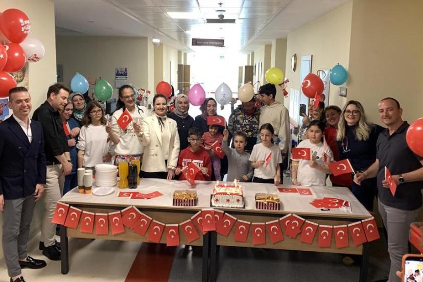23 Nisan Ulusal Egemenlik ve Çocuk Bayramı kapsamında, bayram coşkusuna katılamayan ve tedavileri Burdur Devlet Hastanesi'nde devam eden çocukları için özel etkinlik düzenlendi. Bayraklar ve balonlarla süslenen servis alanında gerçekleştirilen programda, tedavi gören çocuklar 23 Nisan temalı pasta keserek müzik eşliğinde keyifli anlar yaşadı. Yapılan ikramlarla bayramın tadını çıkaran çocuklar, günün anısına hatıra fotoğrafları çektirdi.