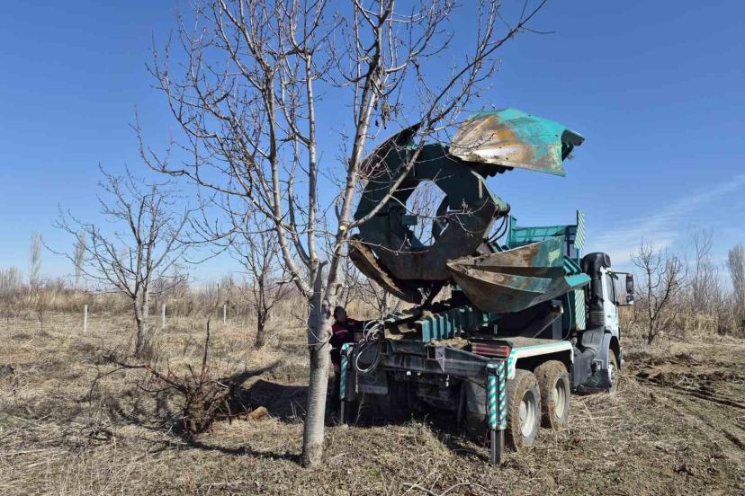 Iğdır’da 15-16 yıllık 77 kiraz ağacı taşınarak kesilmekten kurtarıldı