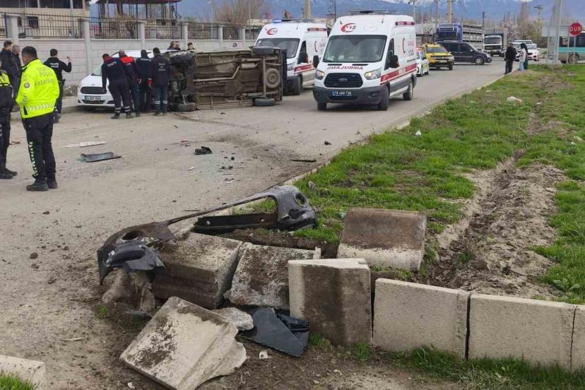 Iğdır’da meydana gelen kazada ticari araç, sürücüsünün kontrolü kaybetmesi sonucu refüje çarparak takla attı. Kazada araçta bulunan iki kişi yaralandı.
