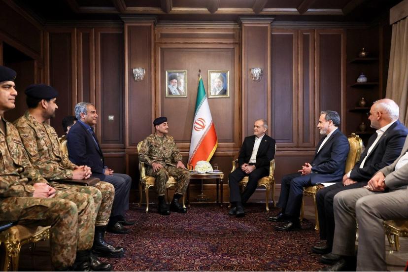 İran Cumhurbaşkanlığından yapılan açıklamaya göre Pezeşkiyan, Pakistan Ordusu Komutanı Asim Munir ile bir araya geldi.