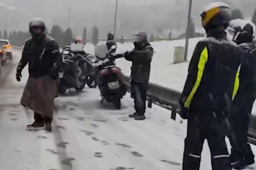 İstanbul'da etkili olan kar yağışı, trafiği felç etti. Sürücüler, karla kaplı yollarda ilerlerken zor anlar yaşarken, motosiklet sürücüleri ise yol kenarında beklemek zorunda kaldı.