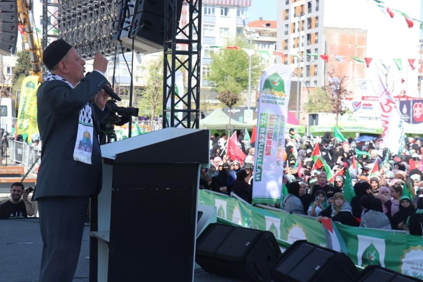 Mesajı, Peygamber Sevdalıları Vakfı İstanbul Sözcüsü Abdulmuttalip Güngel paylaştı. Mesajda Filistin, Gazze ve Suriye konulu mesajlar dikkat çekerken tek kurtuluş yolunun direniş olduğu vurgulandı.