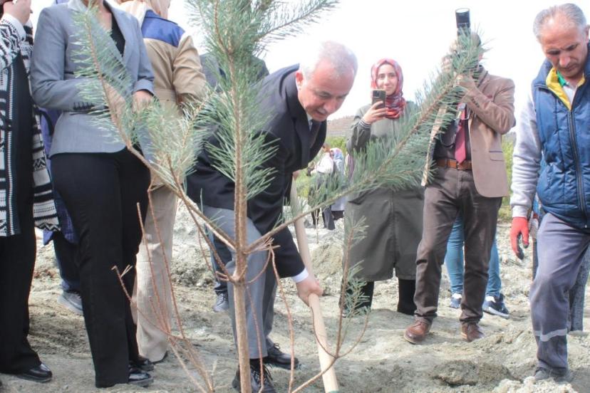 Konuşmaların ardından Rektör Prof. Dr. Nusret Akpolat ve beraberindekiler fidan dikerek geleceğe nefes oldu.