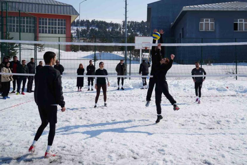 Kampüste kar voleybolu heyecanı