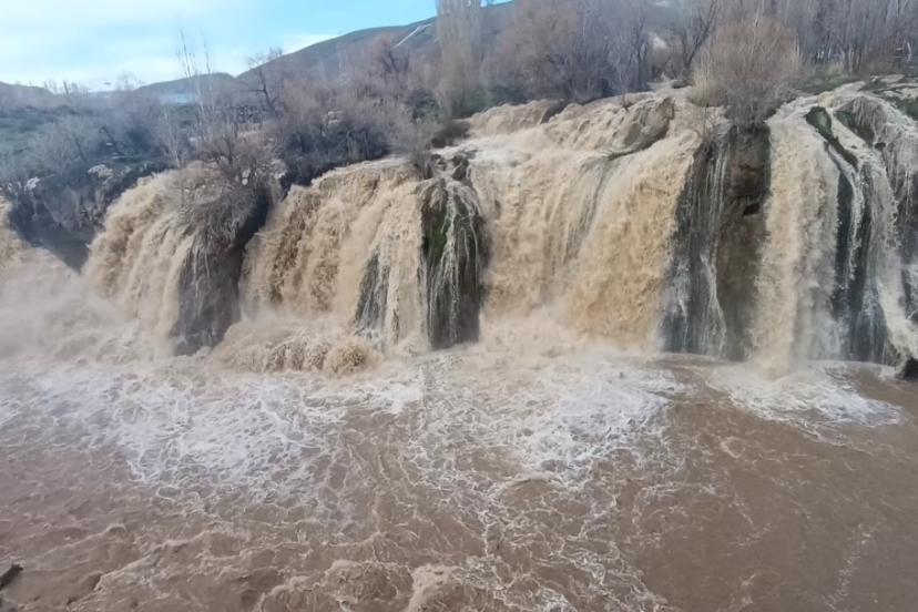 Van’da son günlerde etkili olan sağanak yağışlar ve yüksek kesimlerdeki karların erimesiyle Muradiye Şelalesi coşmaya başladı.
