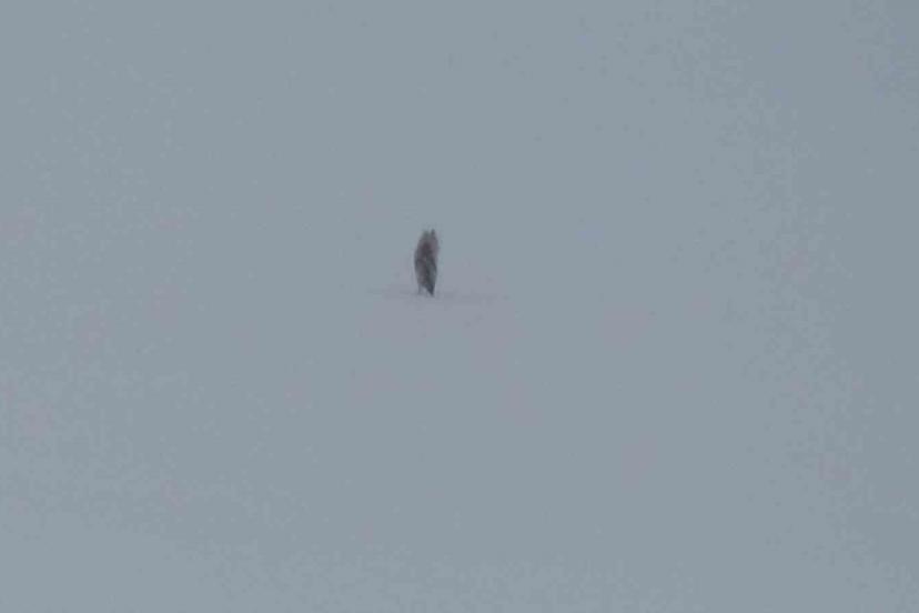 Bir süre bölgede ilerleyen kurdun, kendisini görüntüleyenleri fark ettiği anlar da kameralara yansıdı. Aniden hızlanan kurt, karlı arazide koşarak kısa sürede gözden kayboldu. Beyaz örtüyle bütünleşen hayvanın izini sürmek ise bir süre sonra mümkün olmadı.